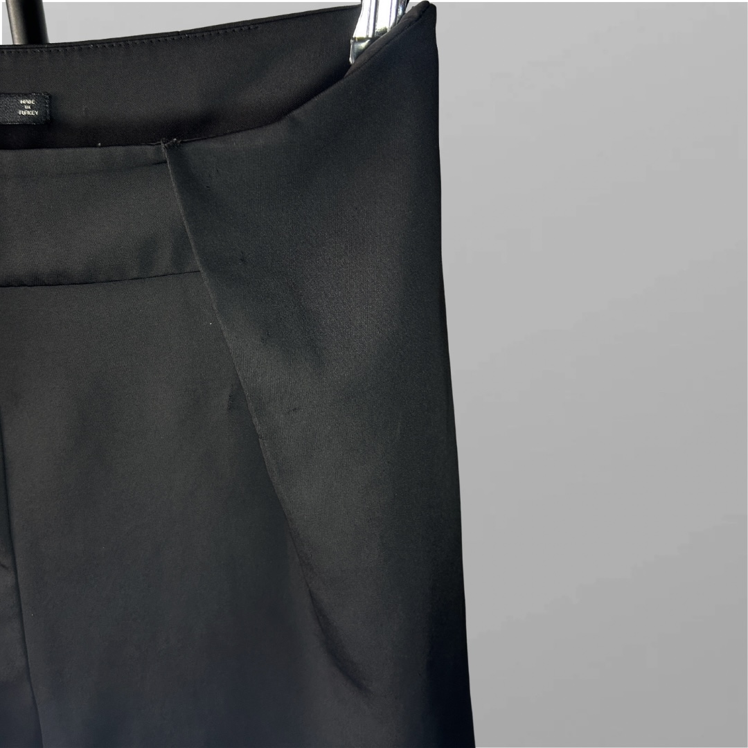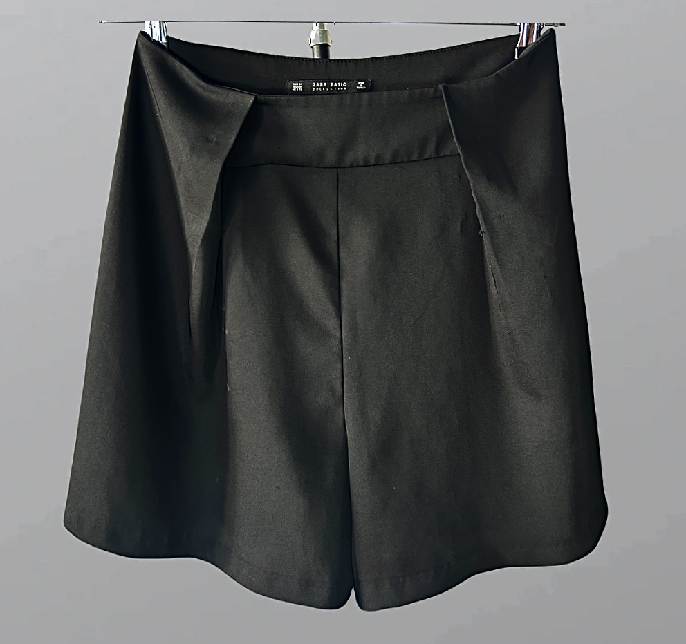 היקף – 78 ס״מ מכנסיים קצרים מחויטים בצבע שחור גזרה גבוהה, מכנסיים בגזרה גבוהה ומחמיאה בסגנון נשפך המזכיר חצאית, מאוד מחמיא ונוח. יש רוכסן מוי בצד, בד מחויט ואיכותי מידה M של זארה.