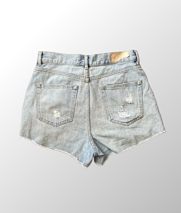 ג׳ינס קצר זארה בגזרה גבוהה עם פסים מנצנצים ורקומים בצדדים! מכנסיים קצרים מיוחדים מג׳ינס , ג׳ינס מנצנץ בצדדים בעיצוב מיוחד ומגניב