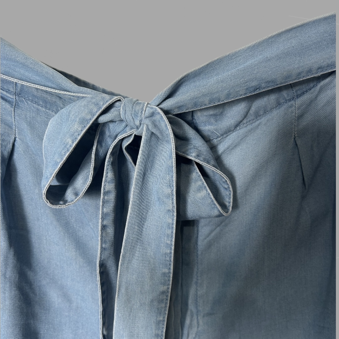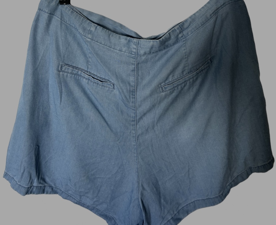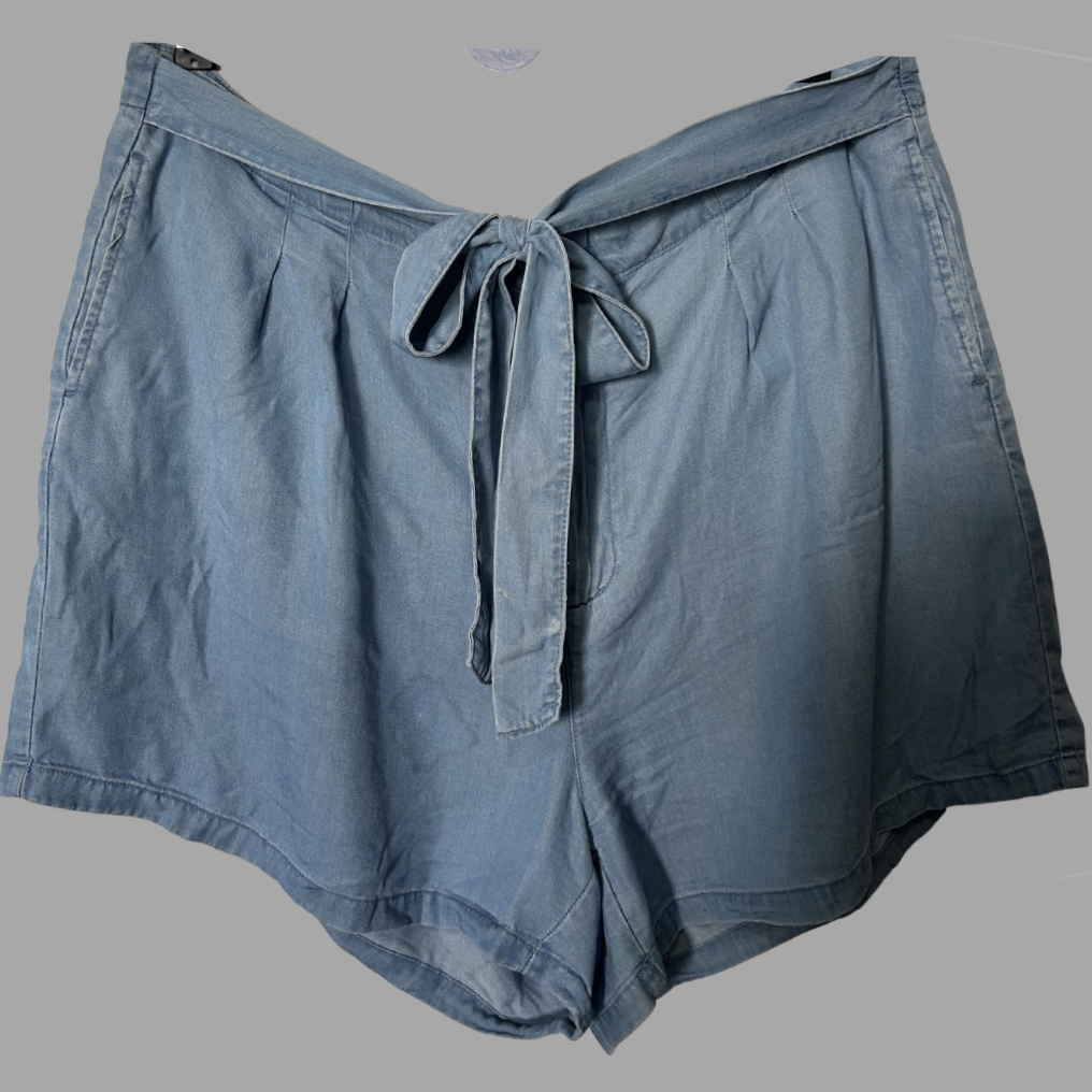 מכנסי ג׳ינס קצרים עם חגורה קשירה וגומי במותן. מצב כמו חדש!
