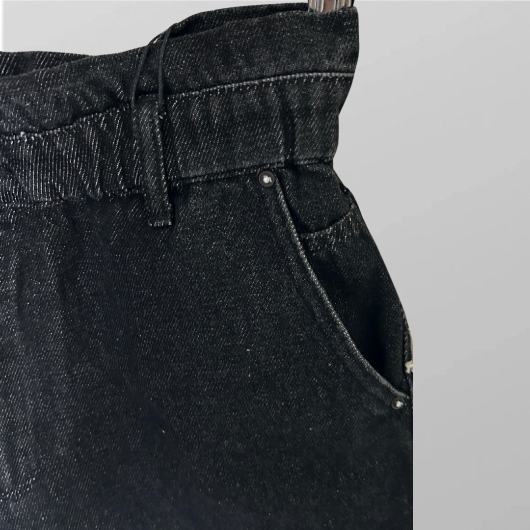 מכנסי ג׳ינס קצרים בצבע שחור עם גומי במותן הם בדיוק מה שאת צריכה לעונה הקרובה. היקף מותן – 70-82 ס״מ מדובר בפריט בסיס עם טוויסט עדכני – גם גזרה גבוהה ונוחה, גם מראה קז’ואלי מחמיא, וגם שיק יומיומי שמתאים כמעט לכל לוק. הקו הנקי והפרטים הקטנים כמו סיומת פרומה, כיסים בגב וחגורת גומי בגב – מייצרים מראה מחודד שמתאים גם לחולצת טי קלילה וגם לטופ צמוד לערב קייצי.