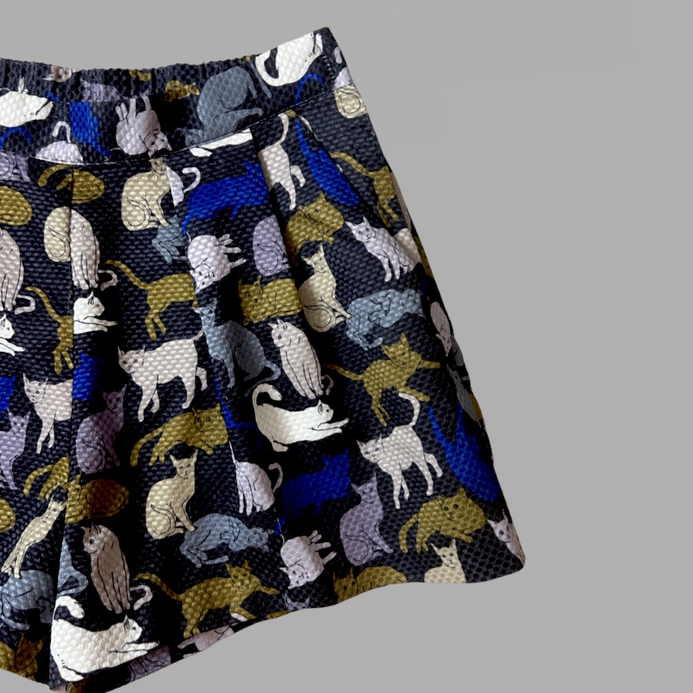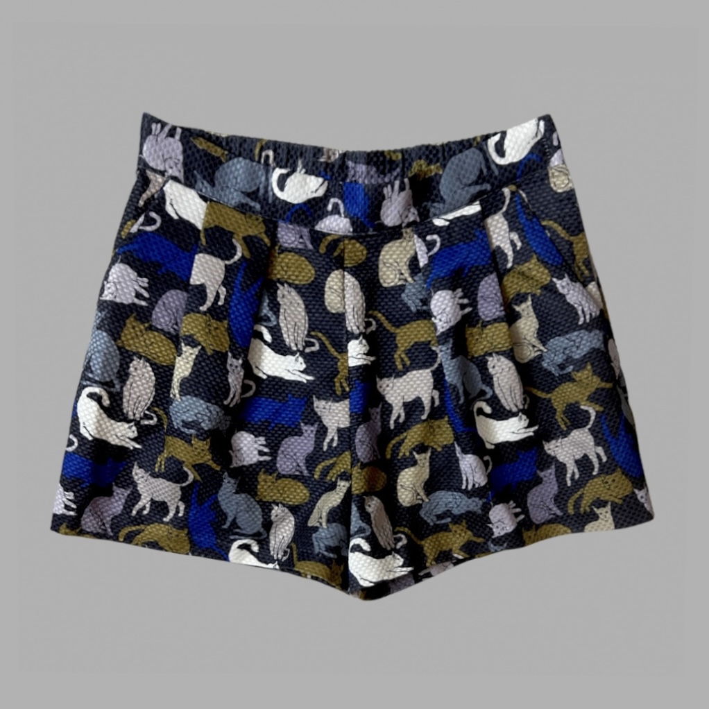בדוגמת החתולים המרהיבה יש משהו שובבי אך מתוחכם – היא הופכת את ה־מכנסיים הקצרים המודפסים האלה לפריט בולט שיכול לשדרג כל חולצה בסיסית. הדפס החתולים מוסיף מגע אמנותי מלא חיים ומושך את העין, אך בזכות הצבעוניות המאוזנת הוא נשאר קלאסי ומדויק.