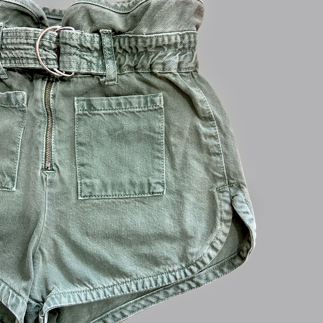 Mango מידה XS מכנסי ג׳ינס קצרים גזרה גבוהה צבע ירוק מיוחד היקף מותן – 73 ס״מ