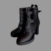 חדשים מידה 40 מגפון שחור מרקם סאטן עם עקב מרובע בעטור רצועות ״חגורה״ יש רוכסן בצד לסגירה נוחה
