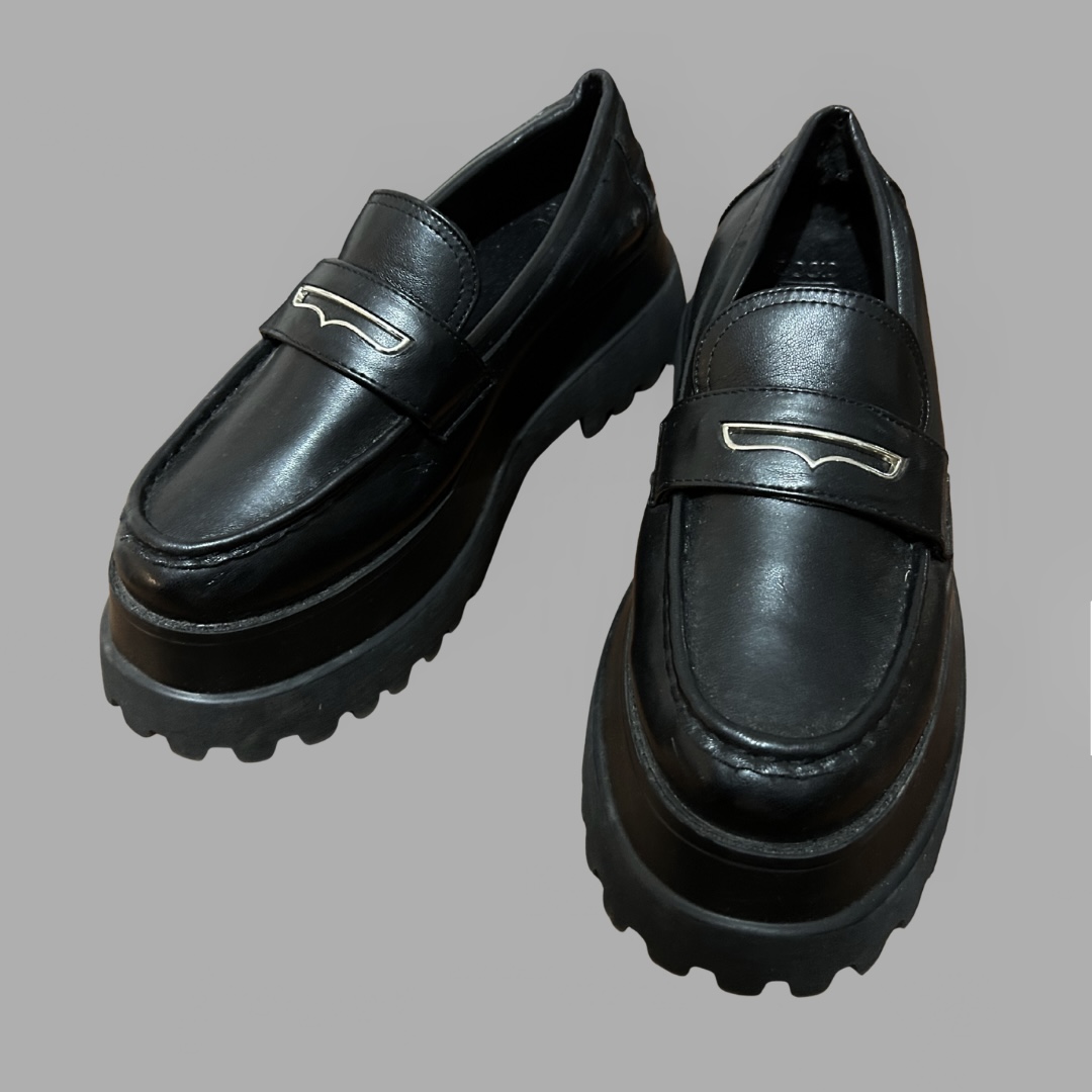 H&M חדשות! נעלי לאופרס שחורות דמוי עור מידה 39 עם אבזם בכסף