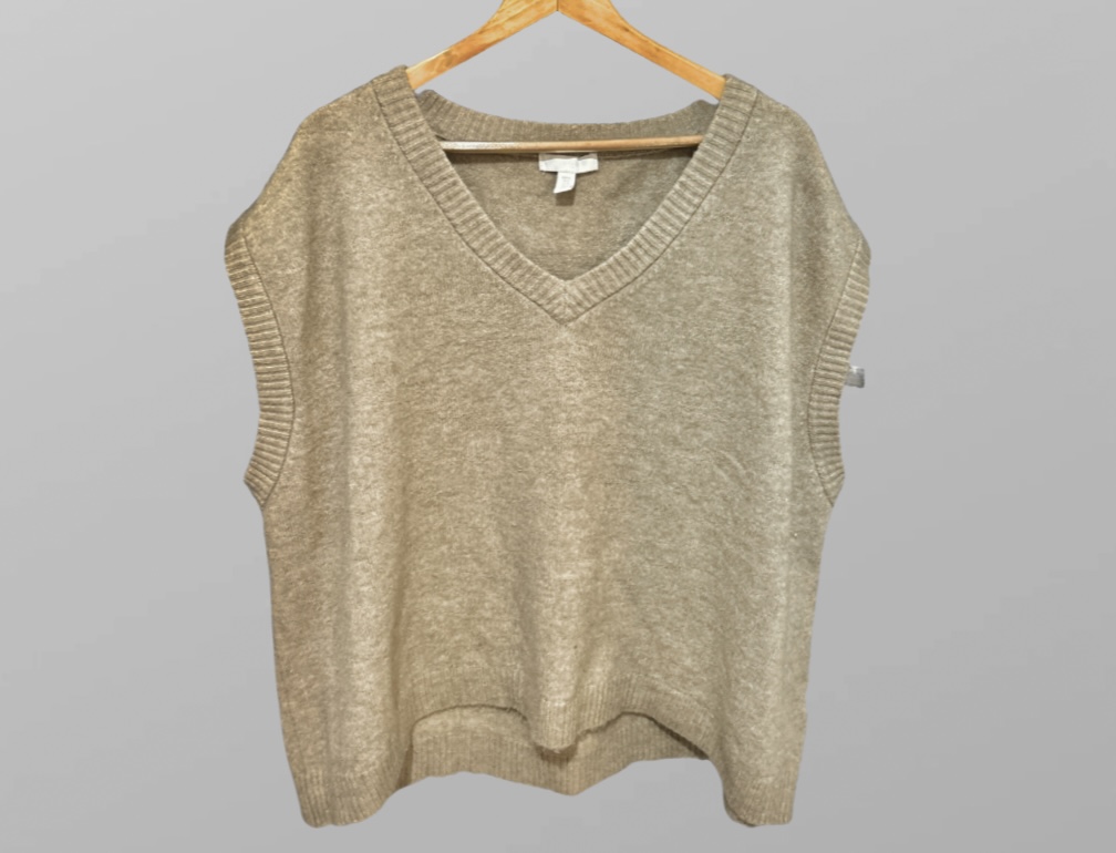 אפודת סריג נעימה בצבע חום מוקה של Hm מידה 42. אפודת אוברסייז עם מחשוף וי