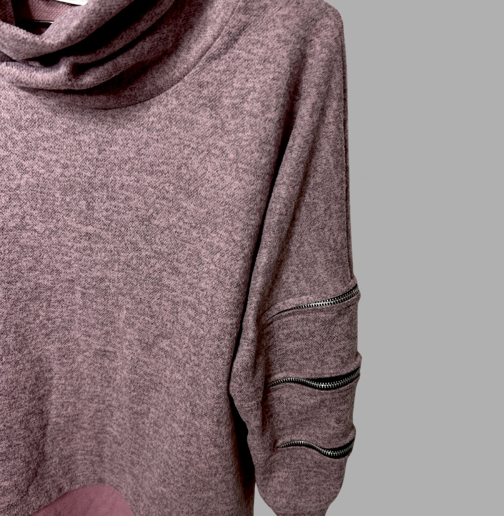 מידה M סווטשירט סגול עם רוכסנים בשרוולים מעט משוחרר חלק אחורי ארוך יותר היקף 110 ס״מ