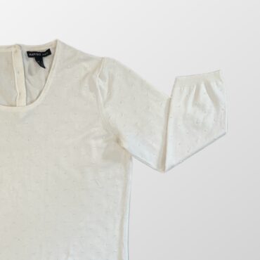 ה־סריג חגיגי הזה משדר יוקרה גם בלי מאמץ. שילוב הגוונים העדין מעניק לו מראה נקי אך עשיר, והוא מתאים גם לשילוב עם חצאית אלגנטית וגם עם ג’ינס פשוט ללוק נינוח אך מוקפד. הדוגמה המעוטרת באזור החזה מוסיפה עומק ועניין, ומעניקה טוויסט מודרני ואלגנטי.