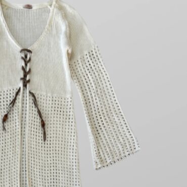 עליונית סריג מחוררת ומעוצבת בשילוב שרוכים חומים מידה M