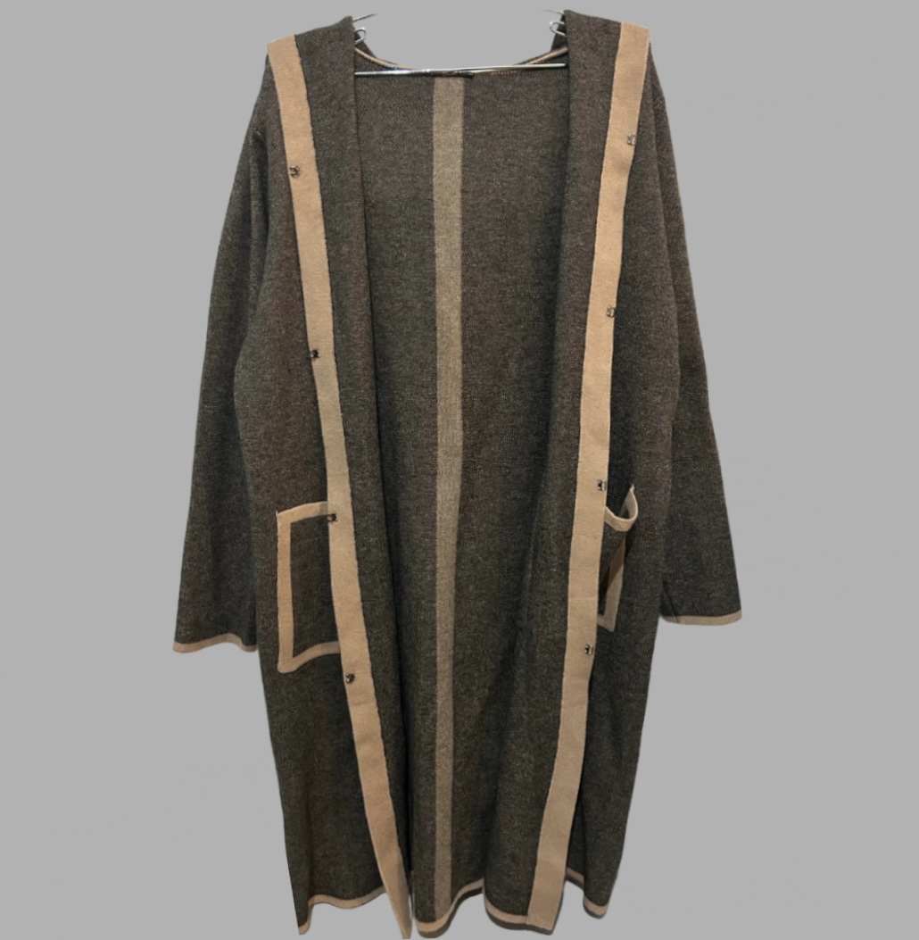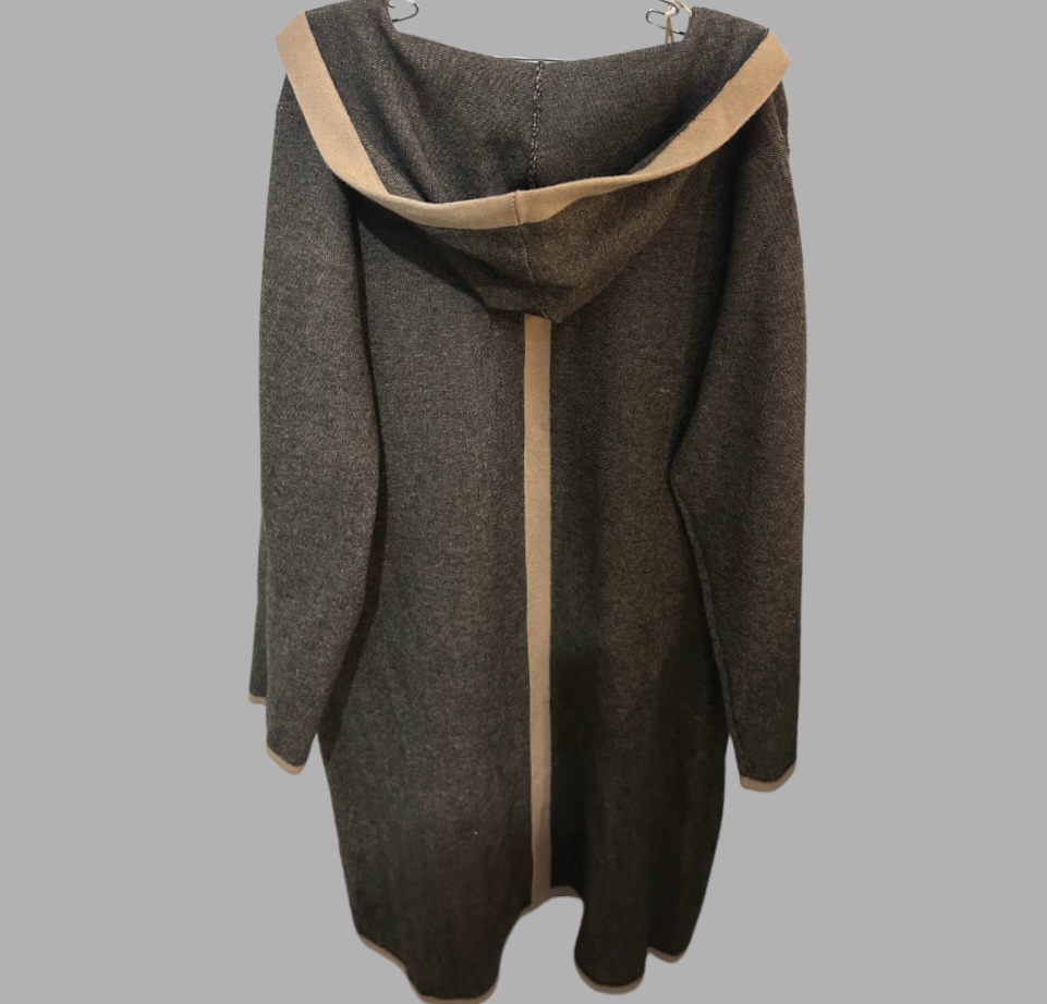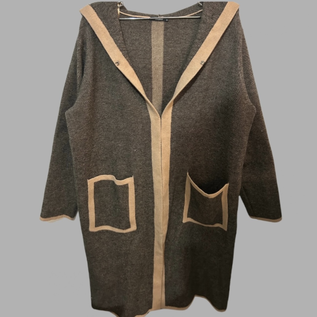 GOLBARY קרדיגן ארוך מחמם חום עם בז׳  עם סגירת קרסים וכובע מצב חדש