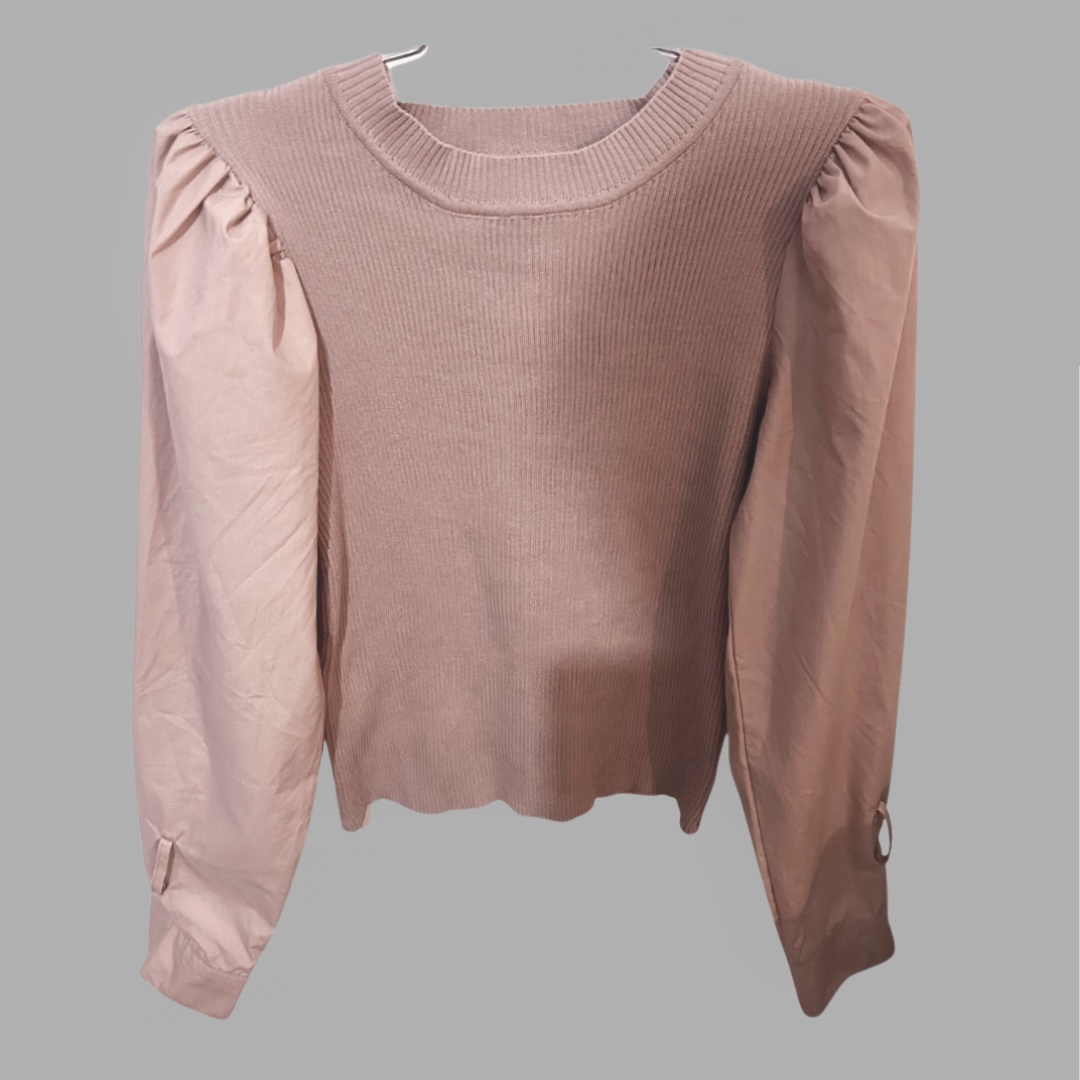 J-Clair סריג ורוד מידה M בשילוב שרוולים תפוחים מבד אריג