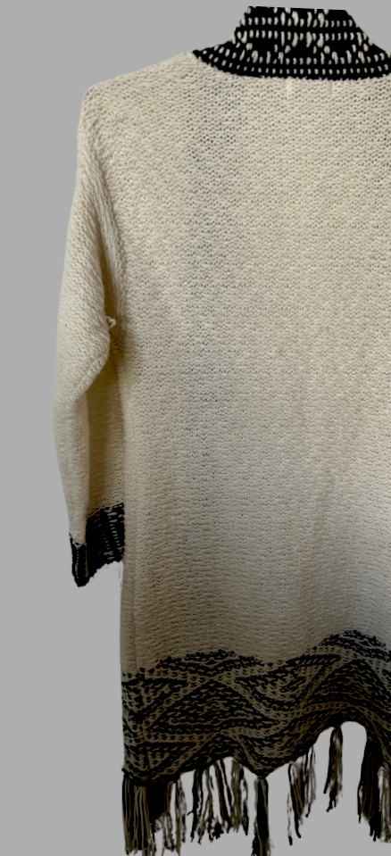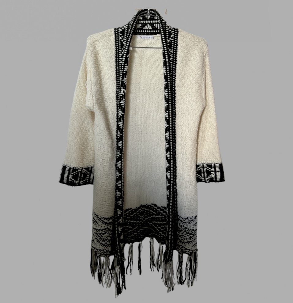 Twentyfourseven קרדיגן בוהו שיק עם הדפס שחור ופרנזים מידה Xs