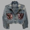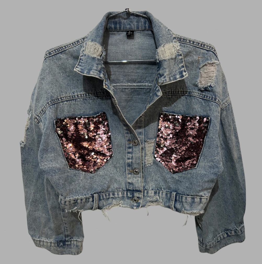 ג׳קט ג׳ינס קרופ אוברסייז פאייטים מידה L מצב חדש