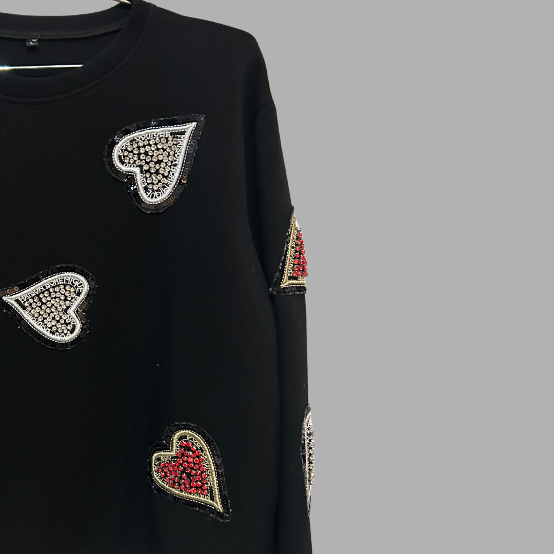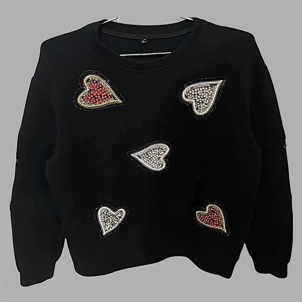 חדש! סווטשירט שחור אבנים בצורות לבבות מידה S מחמם ונעים מבד פוטר איכותי ורך