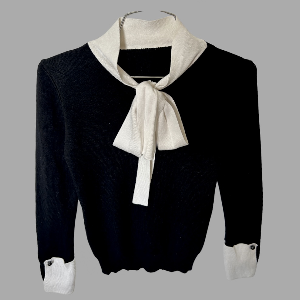 כל פרט קטן מדויק עד הסוף – כולל השרוולים עם הסיומות הלבנות והכפתורים השחורים, שמעניקים לסריג מראה מתוחכם ויוקרתי. זהו סריג לחג קלאסי, שמתאים לערב חג, לארוחה משפחתית או פשוט ליום שבו בא לך להיראות ולהרגיש מיוחדת. הוא מעניק תחושת ניקיון, שלווה וסטייל במינימום מאמץ.