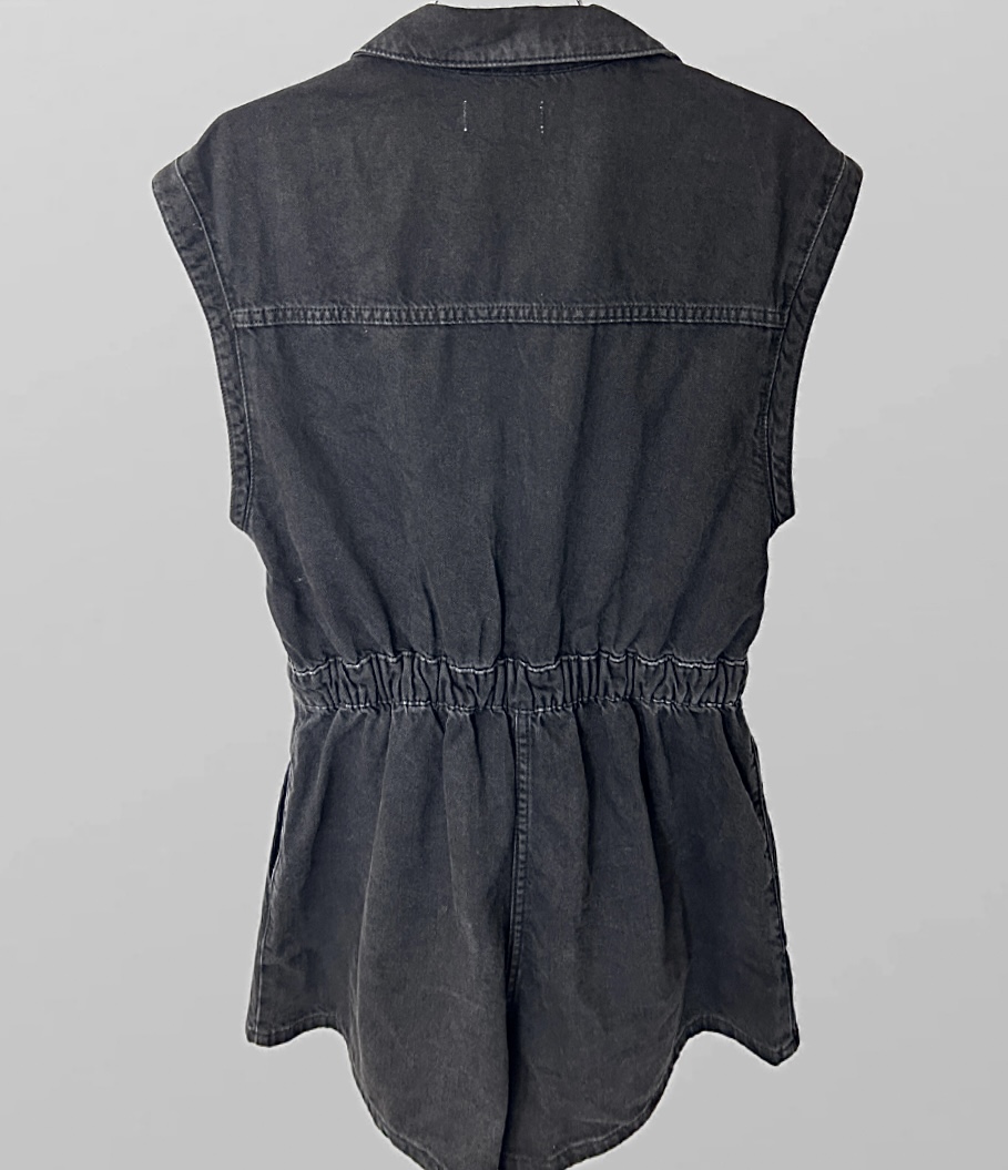 אוברול ג׳ינס שחור קצר, עם סגירת טיקטקים נוחה וגומי גמיש במותן, אוברול מיוחד ומחמיא לכל מבנה גוף 100% כותנה