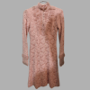 שמלת הוינטג׳ הורודה הזו היא חגיגה של נשיות, עדינות ואלגנטיות קלאסית שלא נראית יותר בעולם האופנה של היום. מדובר בפריט וינטג׳ נדיר, שמלת תחרה ורודה בגוון ורדרד רך עם מרקם עשיר של תחרה פרחונית, גזרת מידי נינוחה וצווארון גבוה עם מלמלה מעודנת שמוסיפה תחושת רטרו מושלמת.