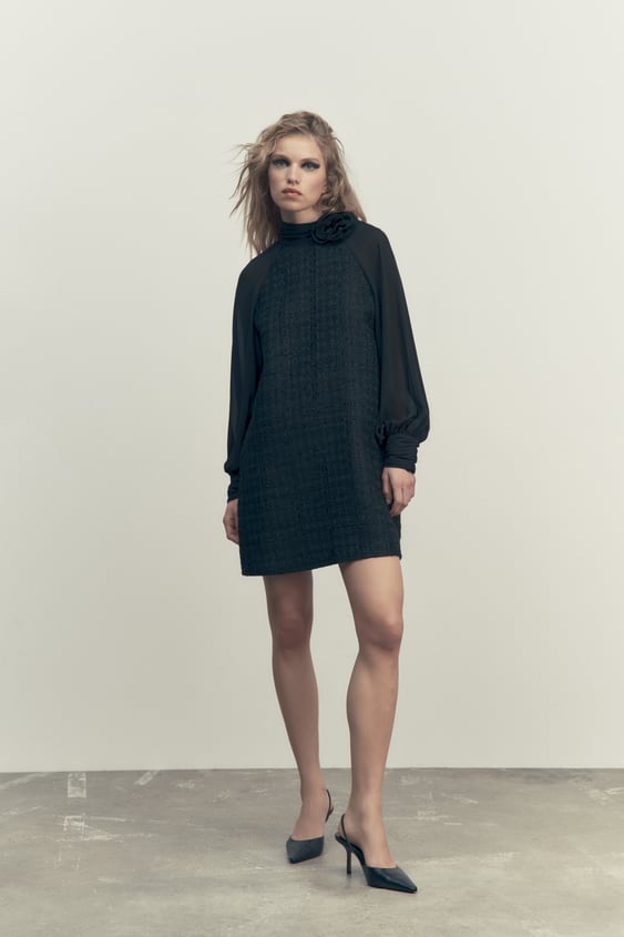 שמלת סריג מחויטת בצבע שחור של זארה מידה M