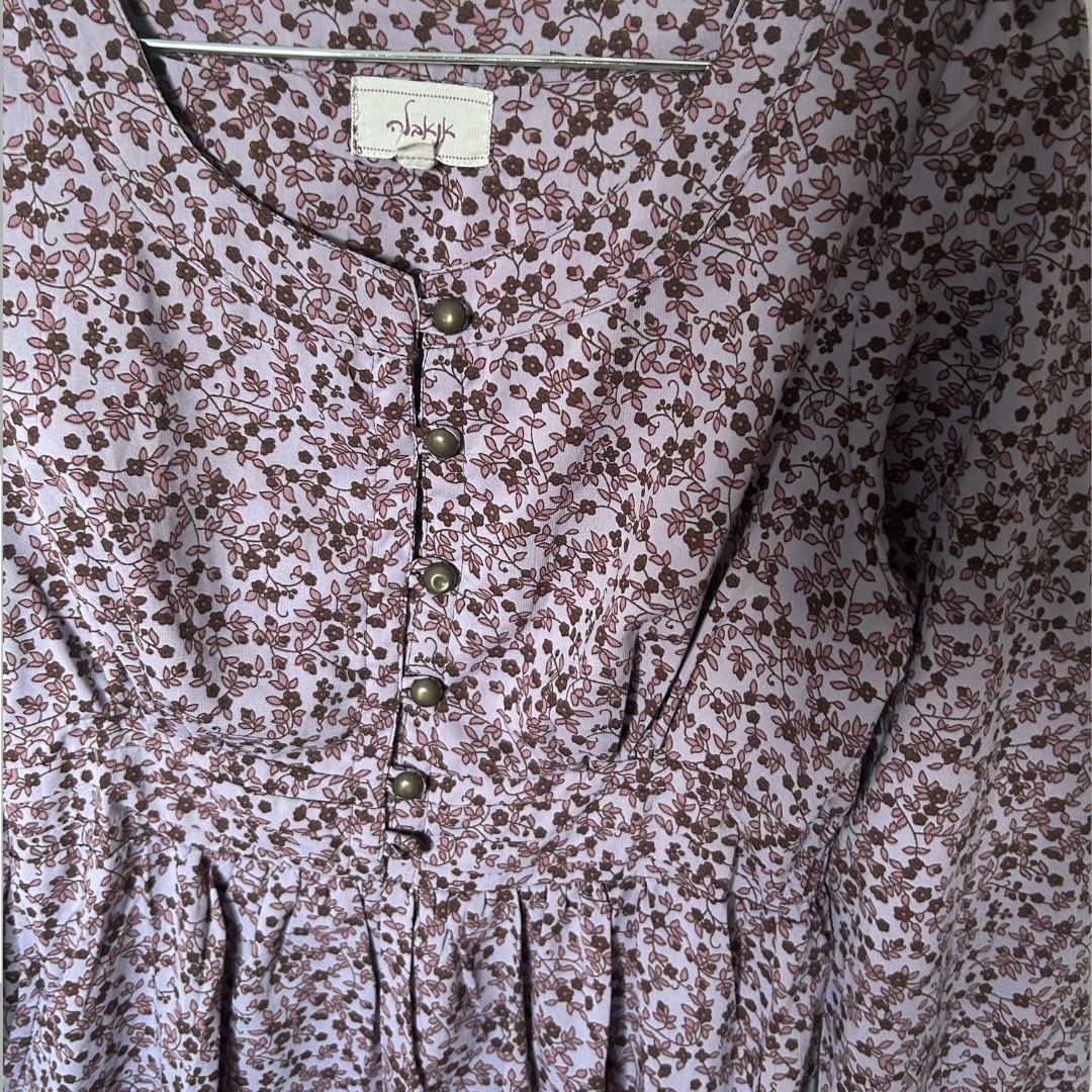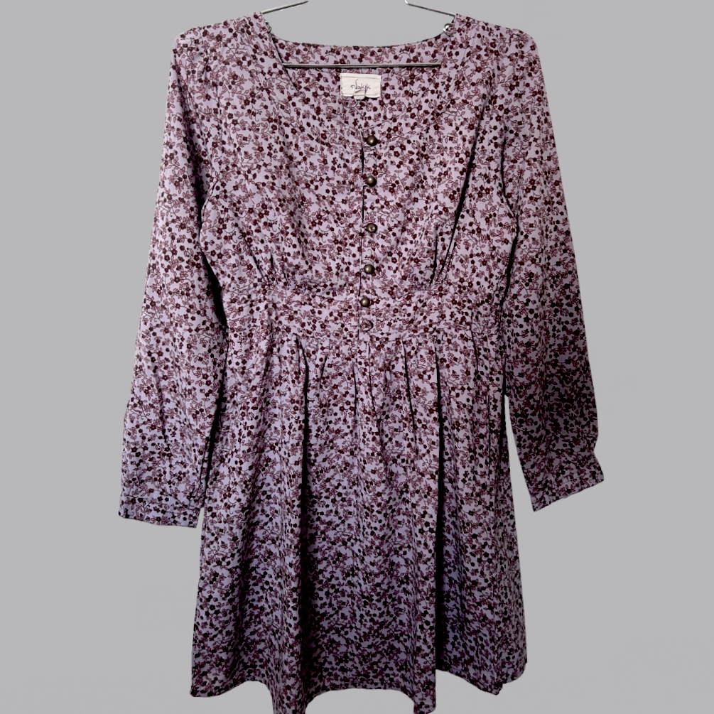 ״אנבלה״ שמלה סגולה פרחונית מידה 36-38 נשפכת כפתורי ברונזה ומותן מודגשת  גזרת A. מצב חדש!