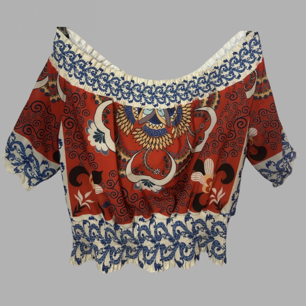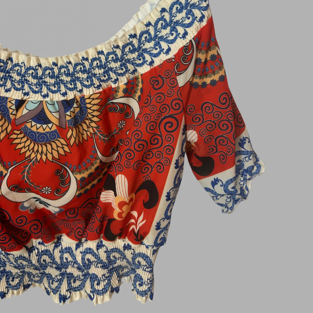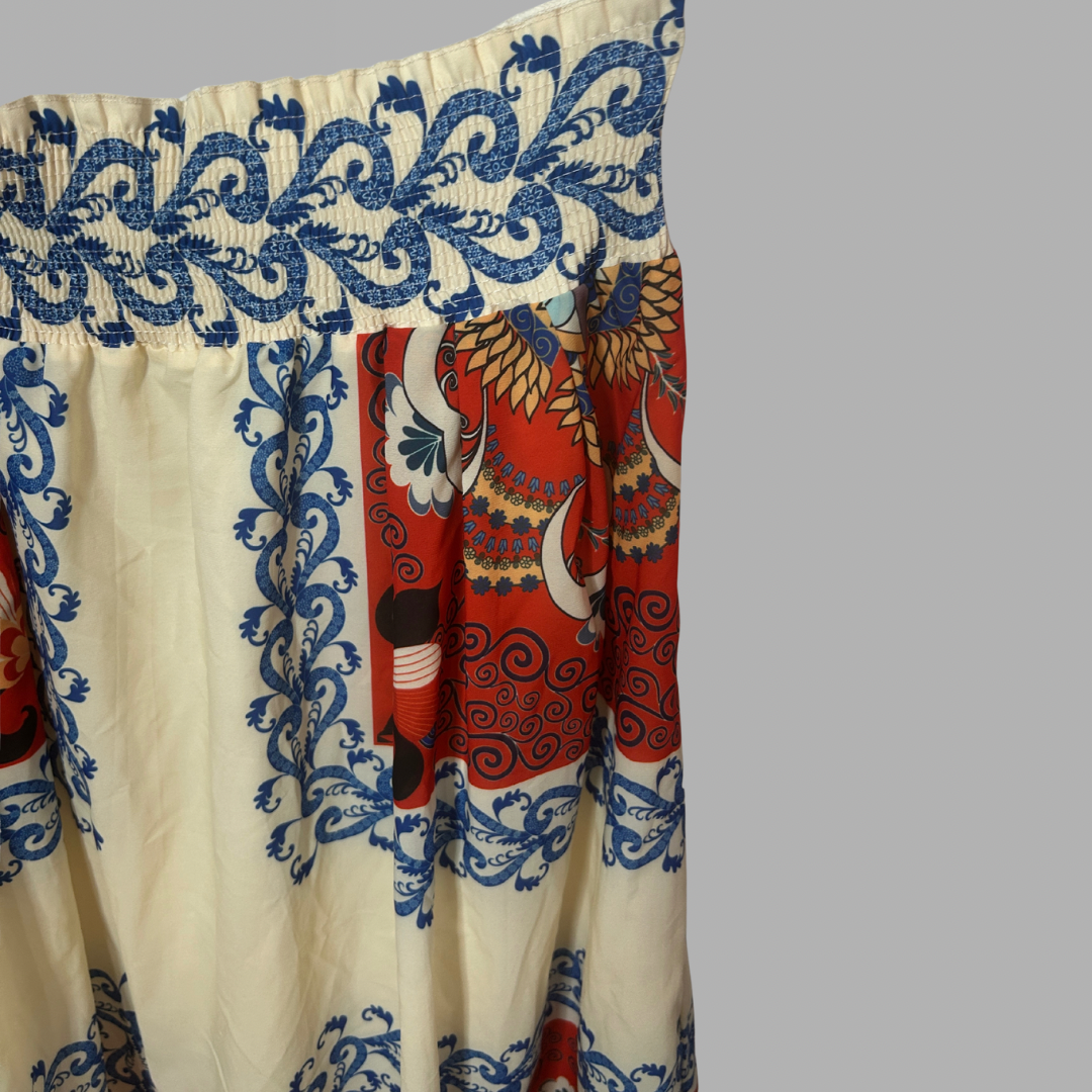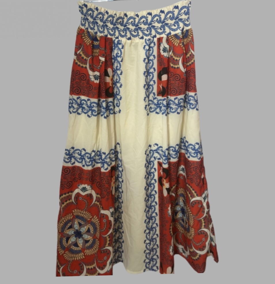 Be Queen מידה XL חליפה בסגנון בוהו שיק חגיגית חצאית מקסי וחולצה אוף שולדרס היקף מותן עד 100 ס״מ