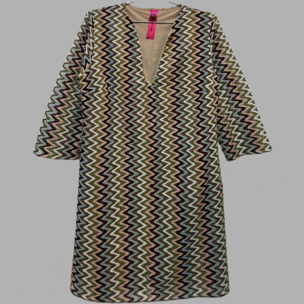 Efrat&Tali שמלה סרוגה בהדפס גיאומטרי טורקיז וחום מידה L בטקסטורה מצב חדש!