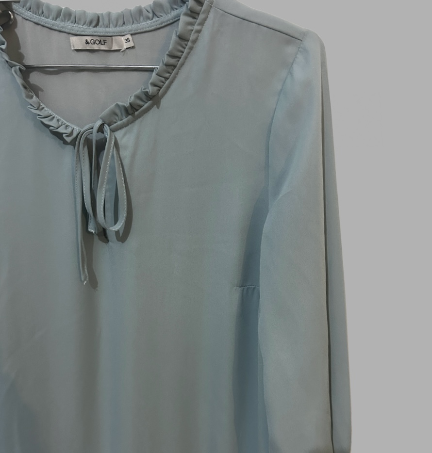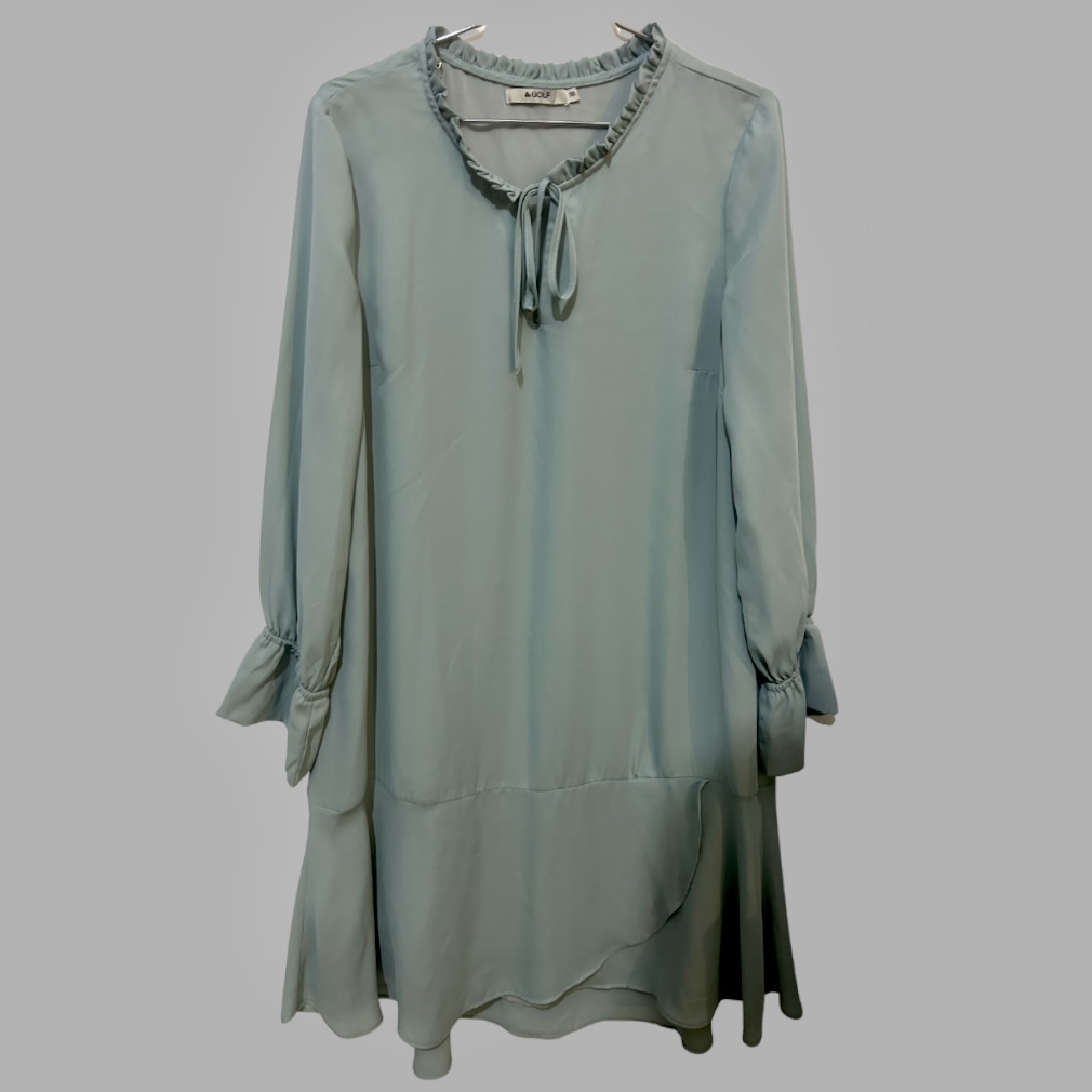 Golf מידה 38 שמלה אלגנטית תכלת ירקרק בגזרת אוברסייז נשפכת עם מלמלות! חדשה!