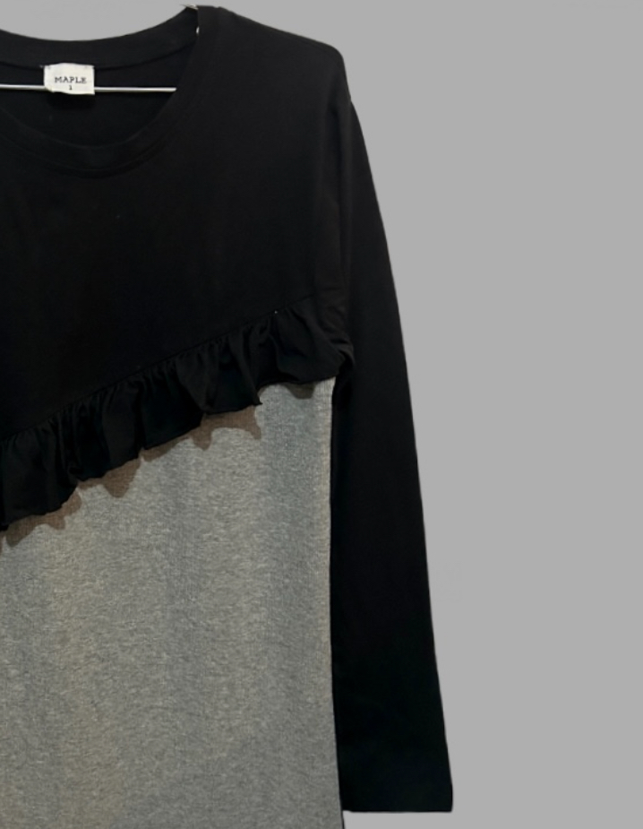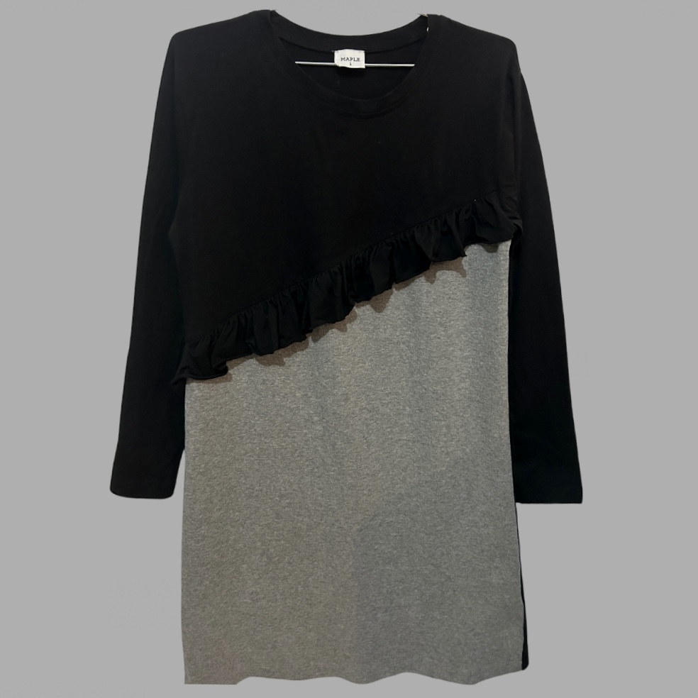 MAPLE שמלת ריב אפורה שחורה 100% כותנה מידה M גזרה ישרה עם מלמלה. מצב חדש!