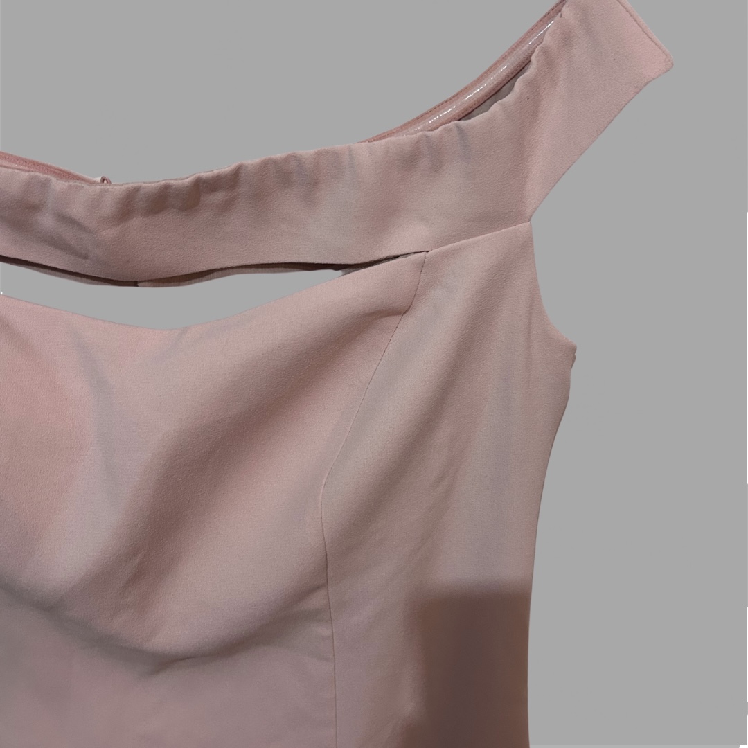 NAZZAN שמלה ורודה מחויטת מידה XL מפתח סירה אוף שולדרס, קיפוד דק בחזה, גזרה אלגנטית עם רוכסן מאחורה. מצב כמו חדש!