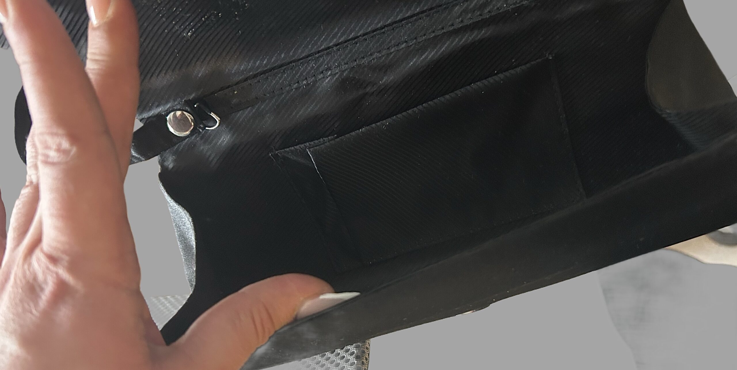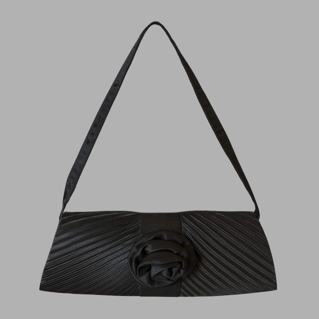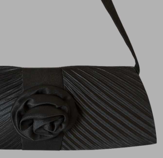 וינטג! תיק ערב סאטן שחור מעוגל עם שושנה וידית נשיאה. מצב חדש!