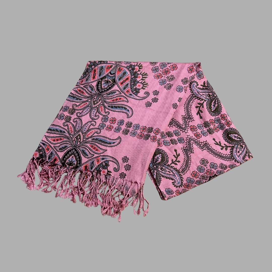 צעיף ורוד דק ונעים, צעיף איכותי בעיצוב ייחודי עם הדפס פייזלי מראה רענן, אלגנטי ומושך עין. צעיף ענק צבעוני דק ונעים מתאים לכל עונות השנה, צעיף אלגנטי דק ונעים שניתן לשלב במגוון לוקים – יומיומיים, חגיגיים, קז’ואל או אלגנטיים. הצעיף הענק הצבעוני משמש כצעיף לצוואר, מטפחת ראש לנשים דתיות, סרט שיער, פראו לחוף, צעיף ערב קליל, או כאביזר אופנתי לקישוט תיק. בד איכותי ורך מלטף את העור, קליל ואוורירי לנשימה, עם גימורים איכותיים בקצוות.