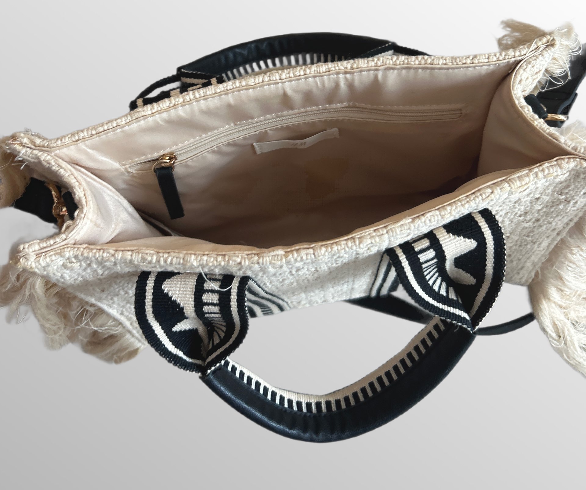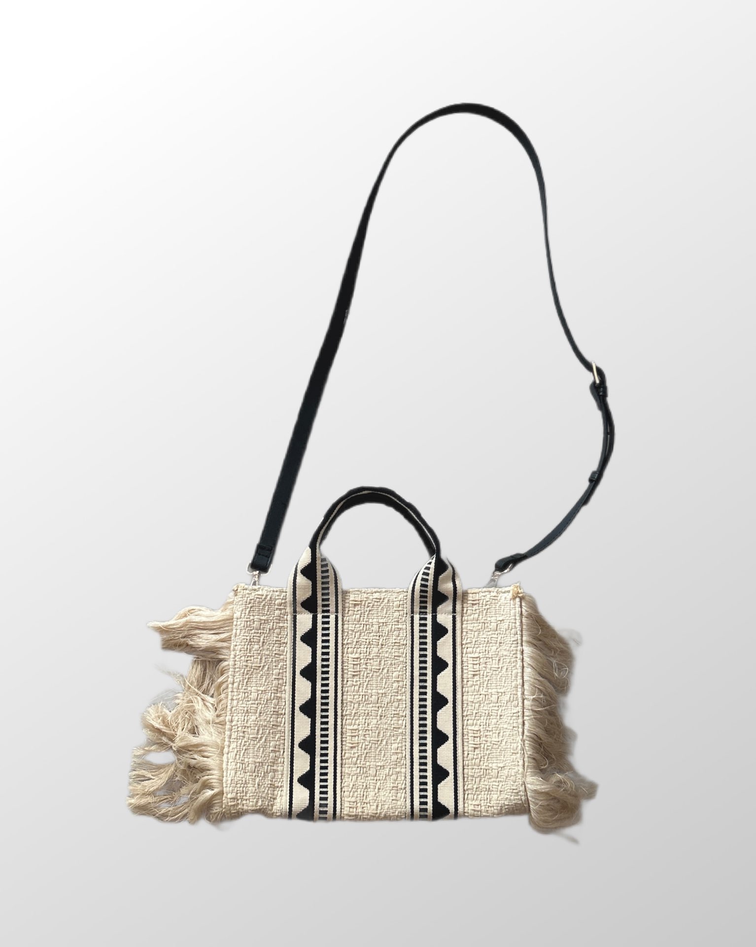 תיק בסגנון בוהו שיק H&M בשילוב פרנזים ורצועה ארוכה נשלפת! מידות – 26/20 ס״מ