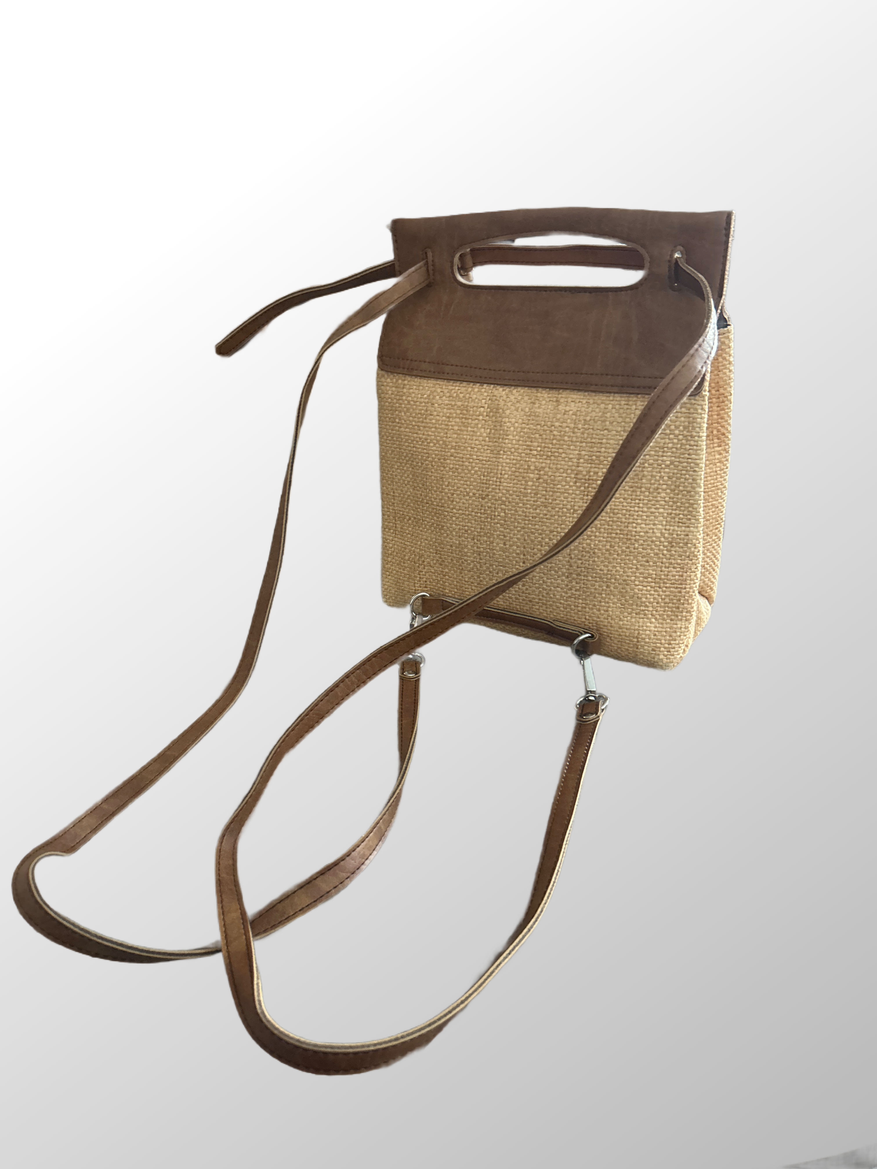 תיק קטן ומטריף בצורת מלבן בשילוב קש בצבע טבעי ודמוי עור בצבע חום?