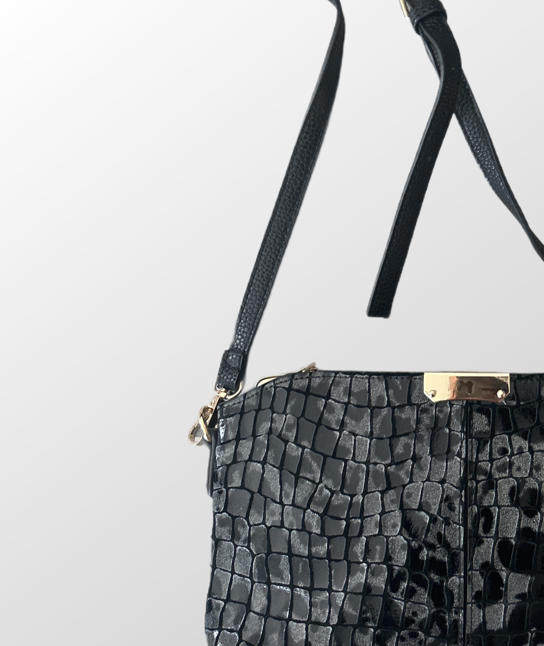 תיק מעוצב עם רצועה מתכווננת מאוד נוח ומכיל מבחינת כיסים! תיק בוטיק חדש לגמרי קצת מבריק בטקסטורת תנין! תיק ערב או יום יום יתאים להכל, תיק מיוחד מאוד