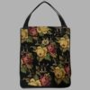 חזית התיק עשויה רקמת גובלן צפופה ואיכותית במיוחד, עם דוגמת ורדים עשירה ומפורטת בגוונים עמוקים של צהוב, בורדו וירוק על רקע שחור. הרקמה אינה הדפס אלא עבודת טקסטיל אמיתית, שמעניקה עומק, טקסטורה ותחושת איכות גבוהה.