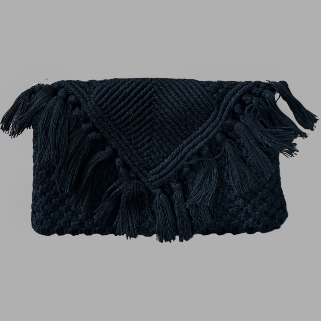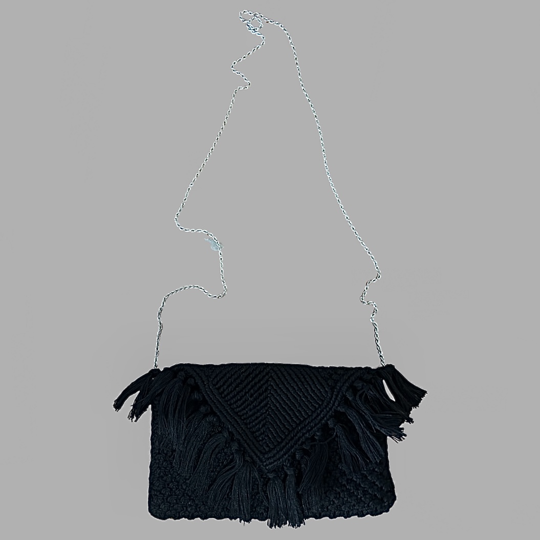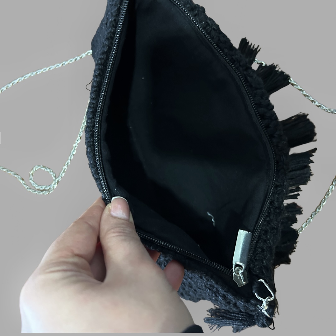 תיק שחור סרוג פרנזים עם שרשרת כסף מצב כמו חדש. TOPTEN