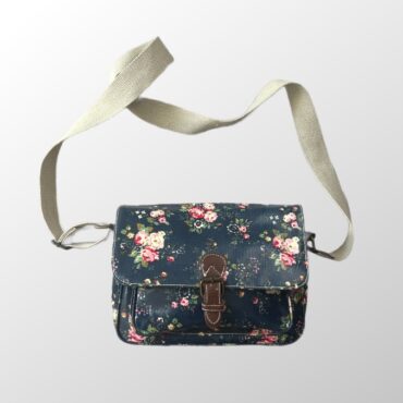 תיק פרחוני בצבע כחול! דמוי עור! עם רצועה ארוכה מתכווננת מידות 28/20 ס״מ