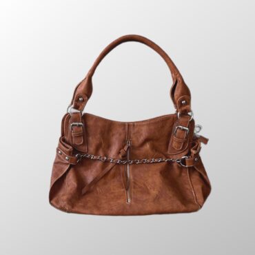 תיק מעוצב מעור אמיתי! של Axia בצבע חום! מעוטר באבזמים ורוכסנים!