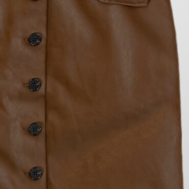 חצאית מידי דמוי עור H&M בצבע חום בשילוב כפתורים! היקף מותן 74 ס״מ