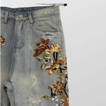 ג׳ינס MOM רקום עם פרחים וקרעים בגזרה גבוהה | מידה S