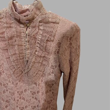 וינטג! שמלת תחרה ורודה מידה S עם מלמלה ופנינים בחלק העליון עם כתפיים עדינות, אורך מידי